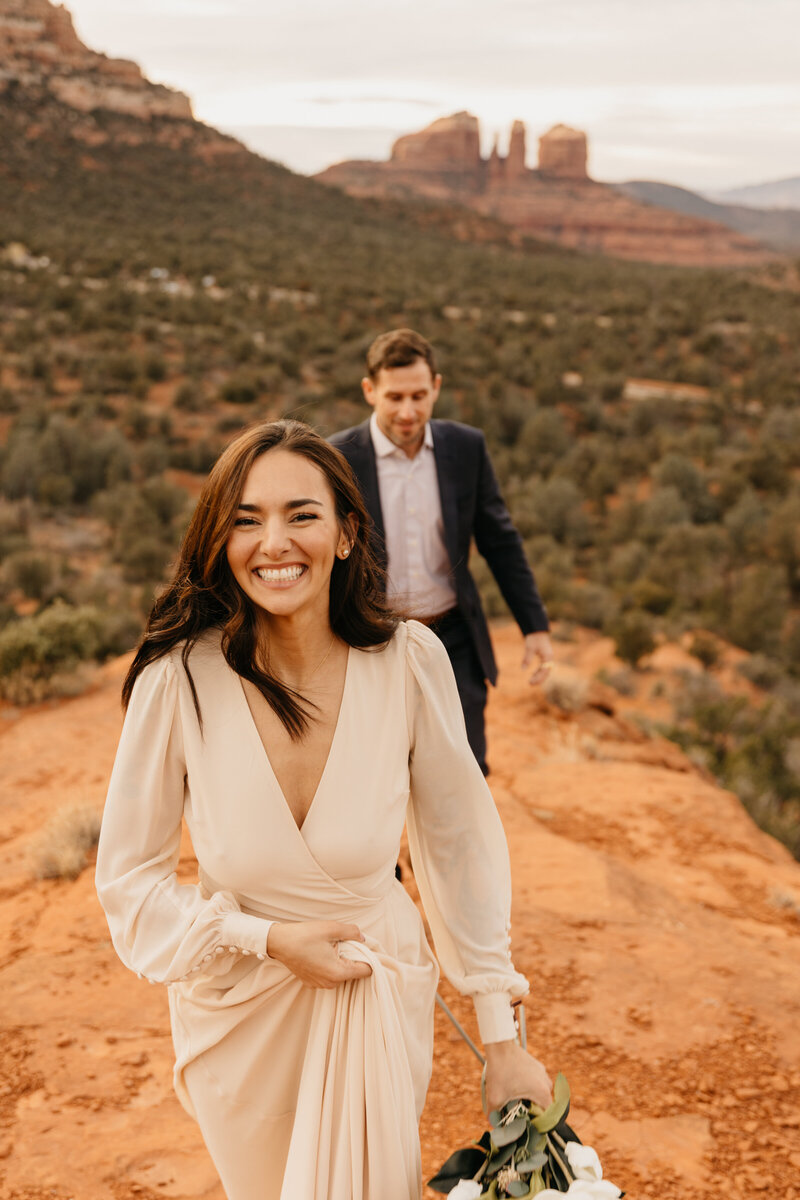 Imagine starting your wedding day with the desert sky painted in shades of pink and gold. You load up the 4x4, music blasting, and wind your way through red rock trails to a place most people will never see. Maybe you exchange vows at the edge of a cliff as the sun dips low, or share your first dance beneath the stars with nothing but moonlight to guide you. Later, you’re laughing over champagne and your favorite comfort food, wrapped in the quiet magic of the desert night.